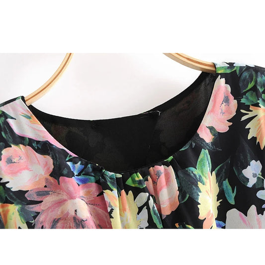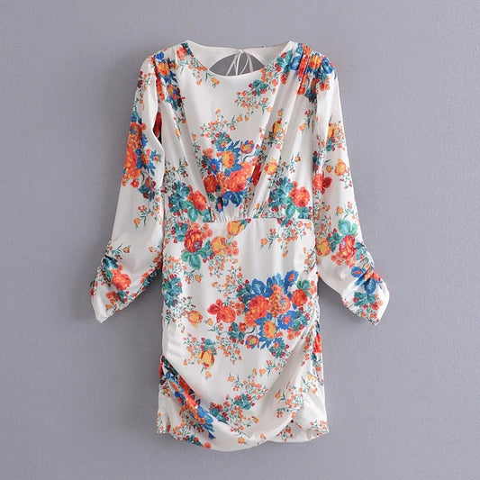 Ladies retro floral print ruffled mini dress