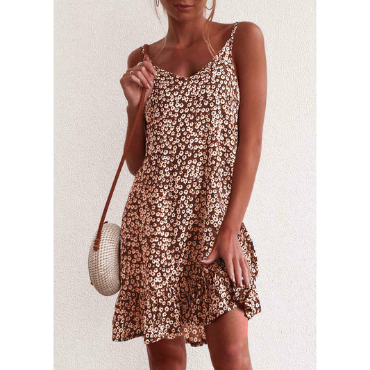 Ruffled Small Floral Mini Skirt Boho Beach Dress