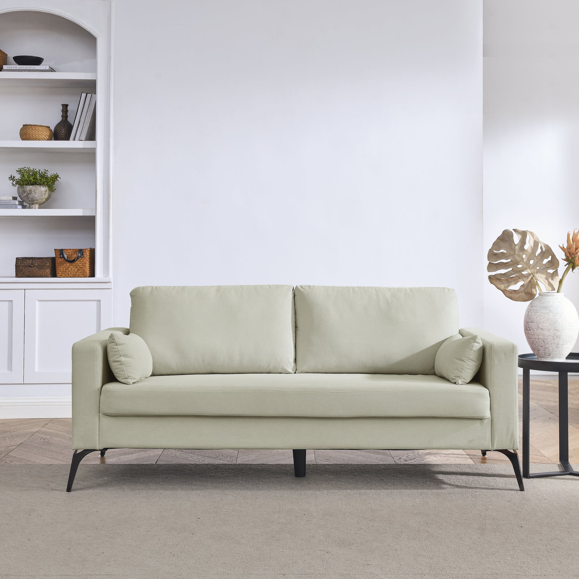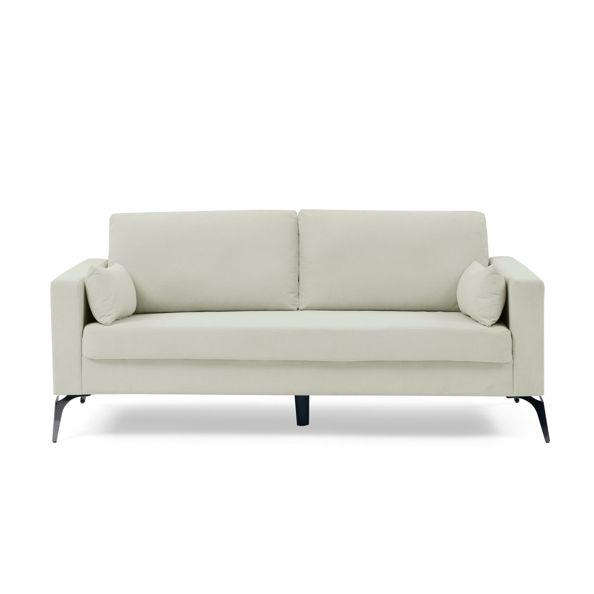 3-Seater Sofa with Square Arms and Tight Back, with Two Small Pillows,Corduroy Beige