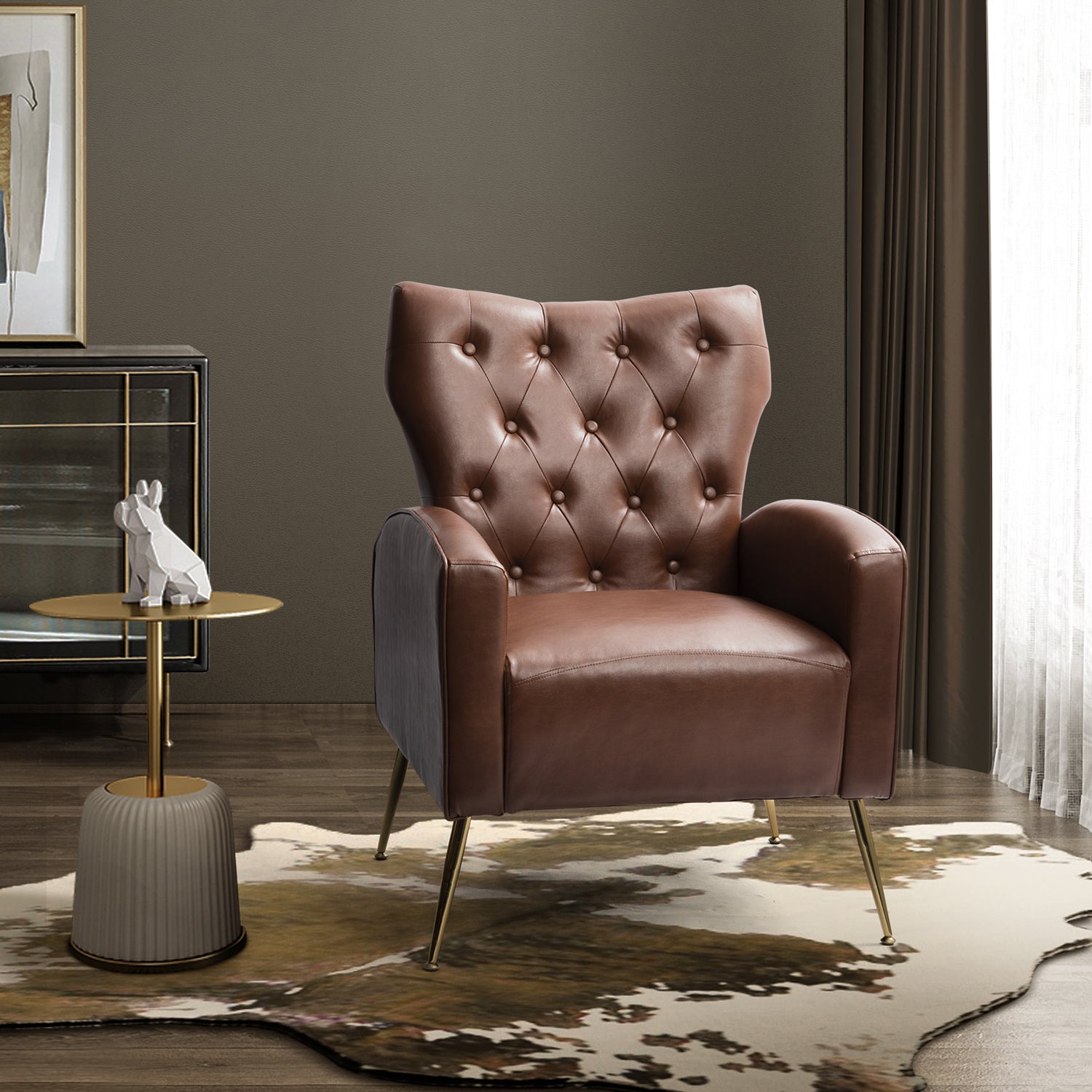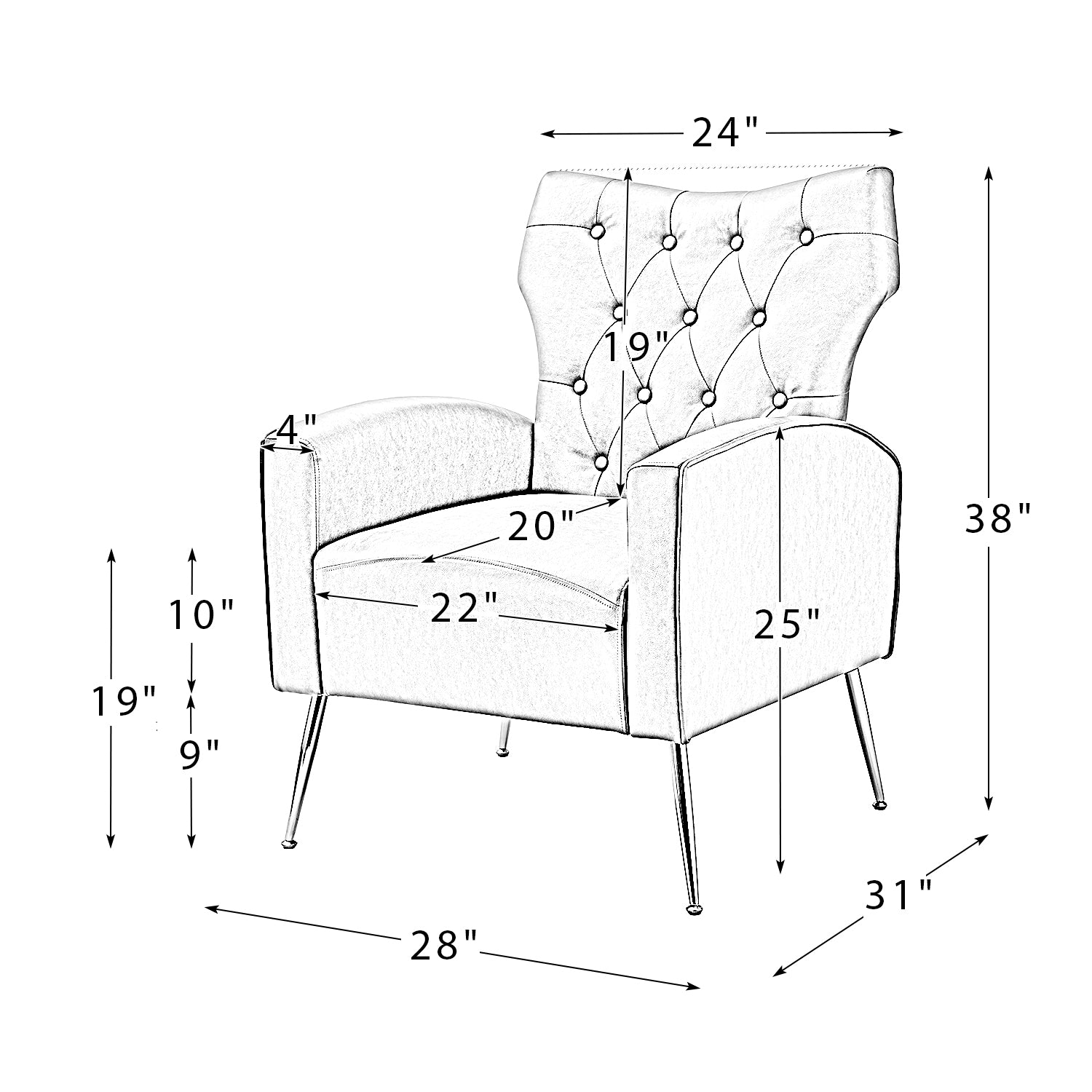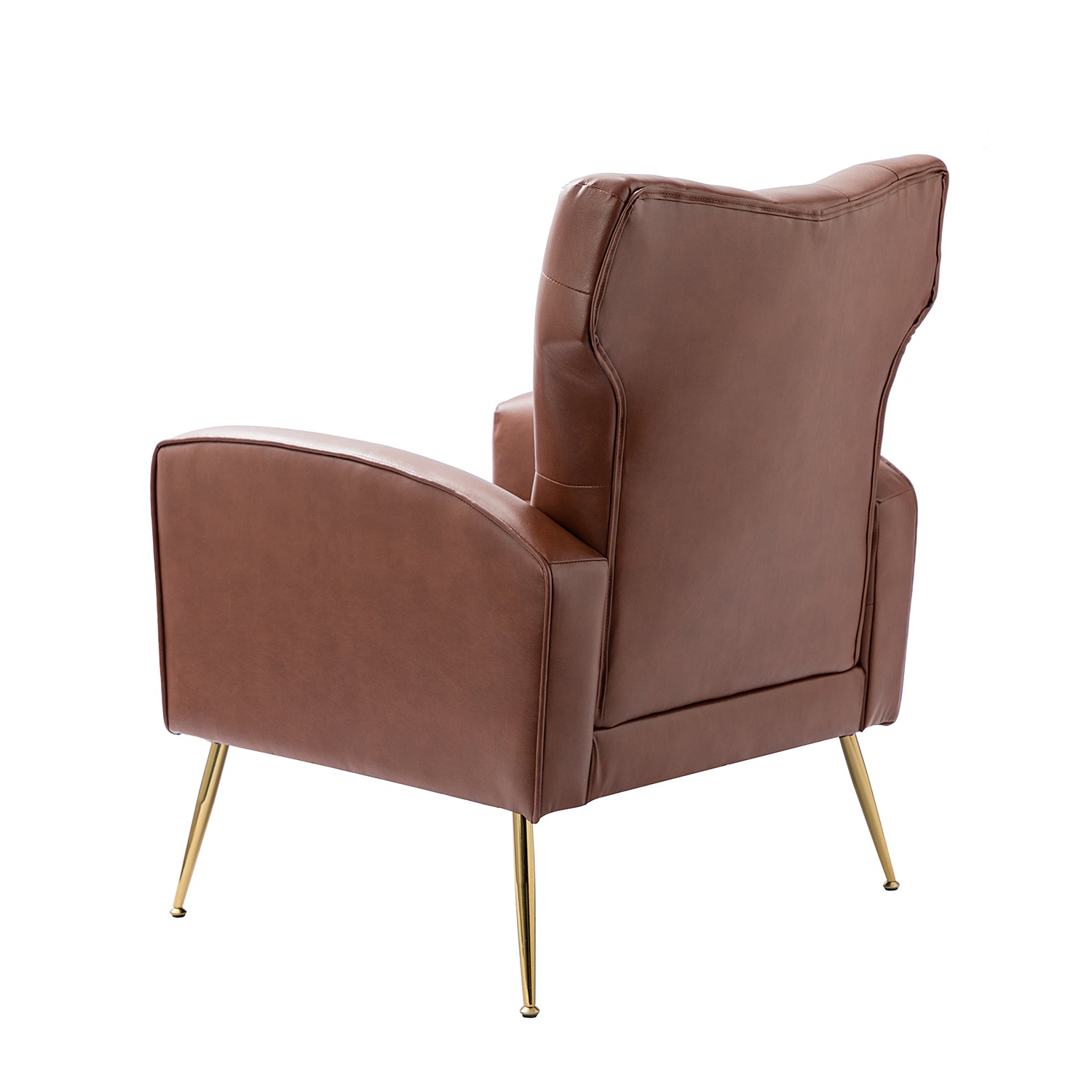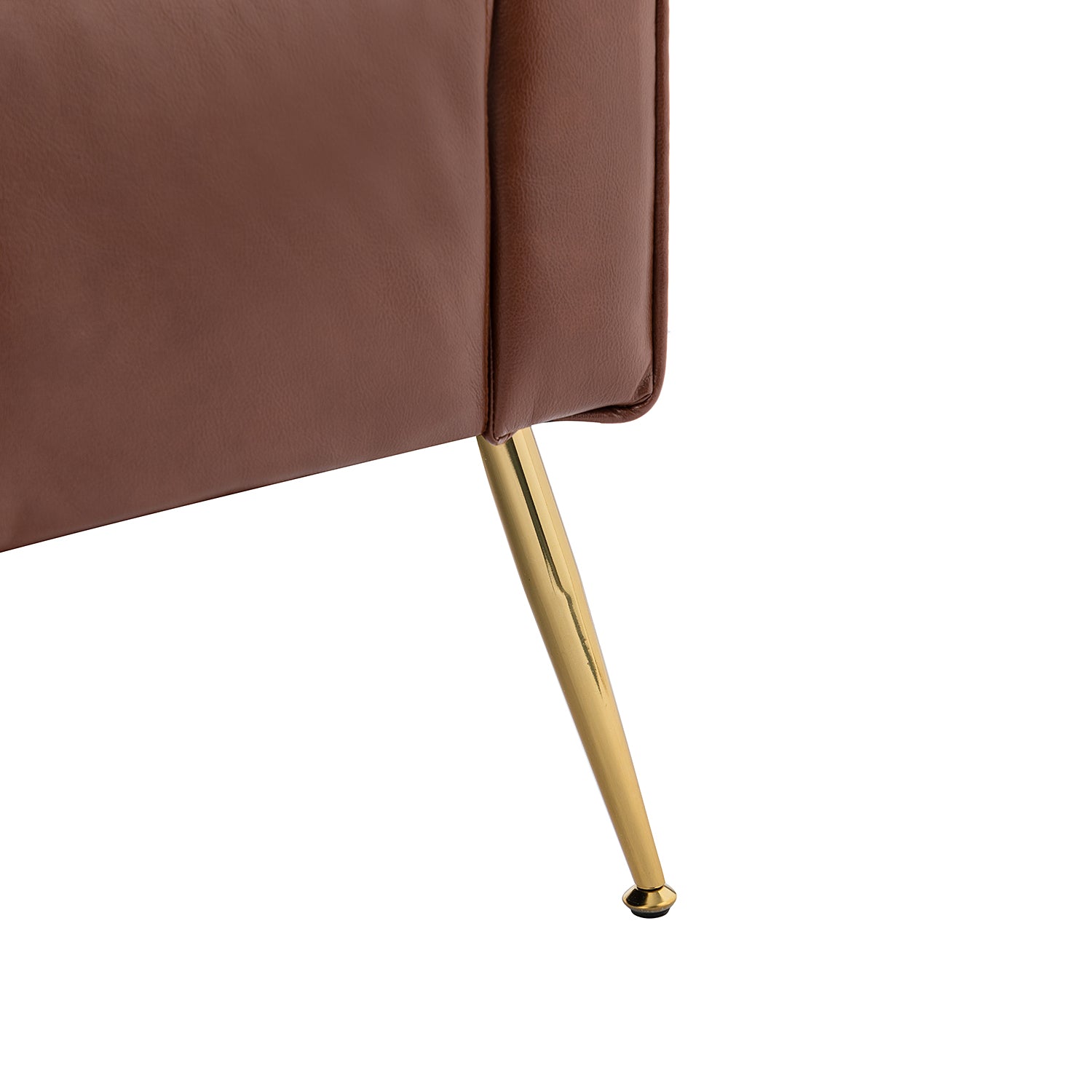 The slender polished golden metal legs bring modern design and add to the timeless fashion of this piece. Plus, this armchair is defined by an iconic silhouette with a dramatic button tufted back and piped edges, while the chair features detail stitching for a tailored touch.
