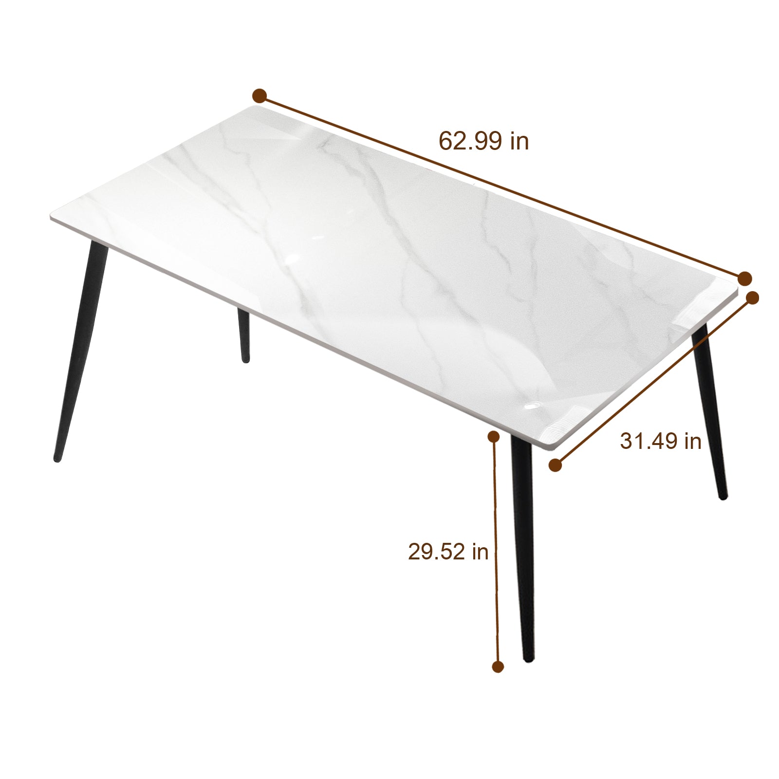 Dining Table Sintered Stone Table Marble Table Porcelain Dining Table for Kitchen, Living Room, 63 inch White Table Only