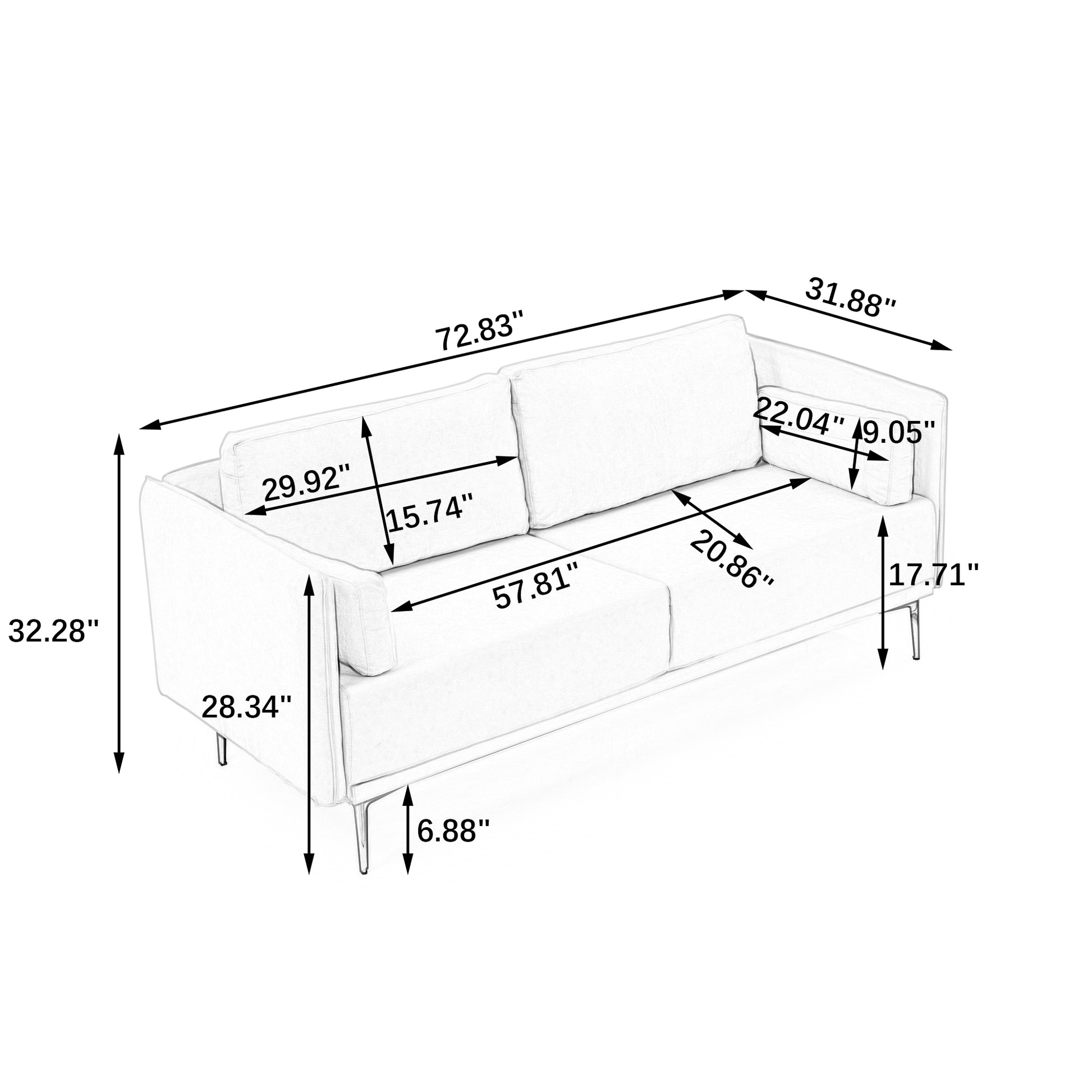 Modern Sofa 3-Seat Couch with Stainless Steel Trim and Metal Legs for Living Room, Linen Beige