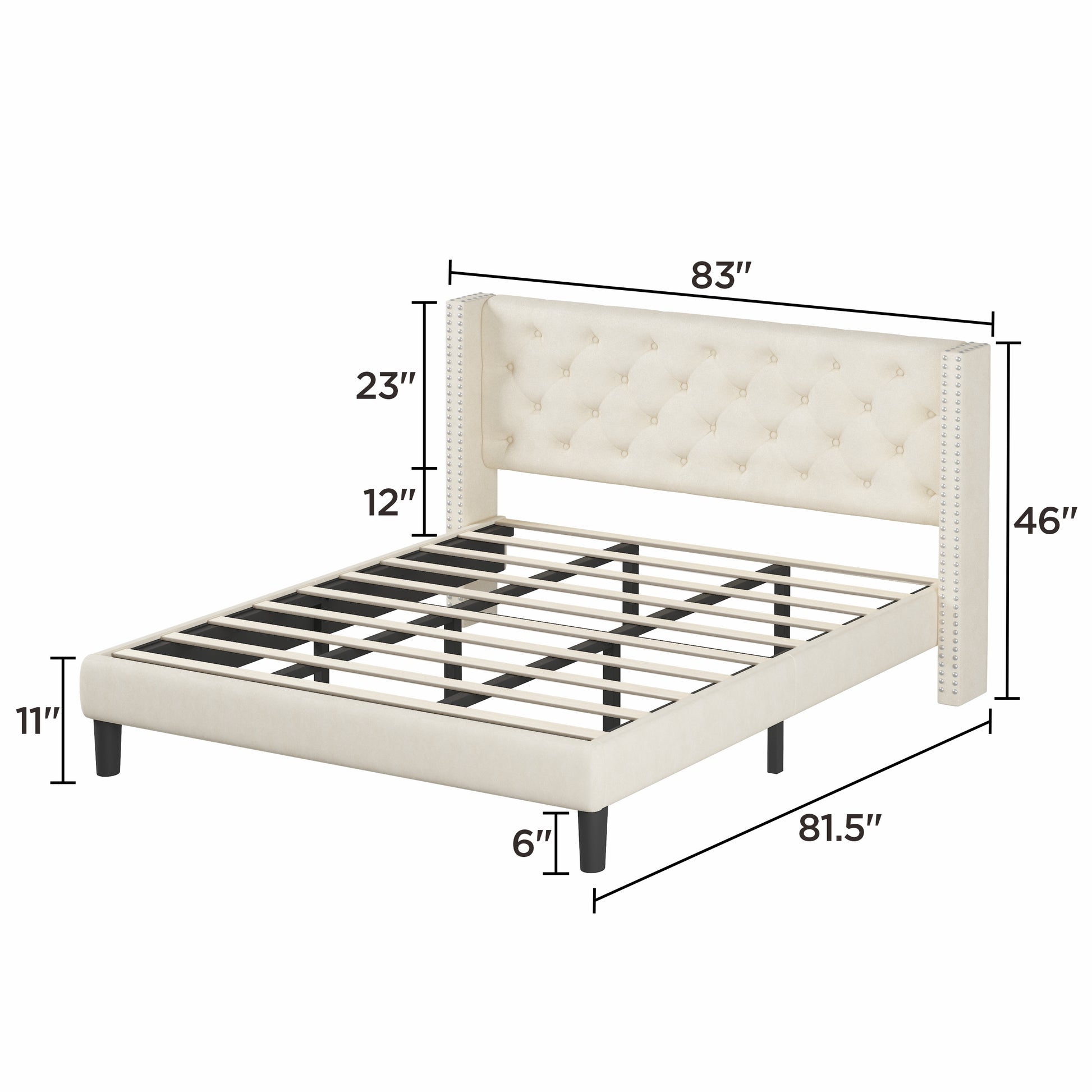 Molblly King Size Bed Frame with Upholstered Headboard, Strong Frame, and Wooden Slats Support, Non-Slip, and Noise-Free, No Box Spring Needed, Easy Assembly, Beige