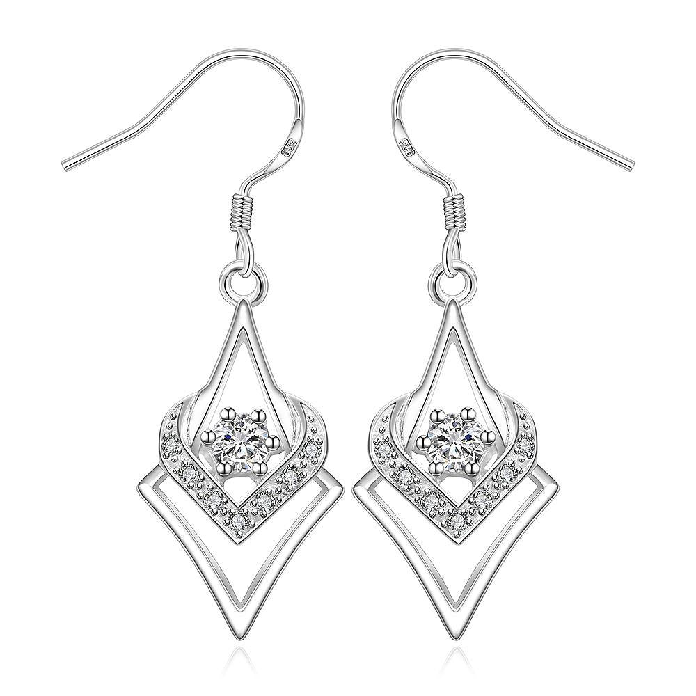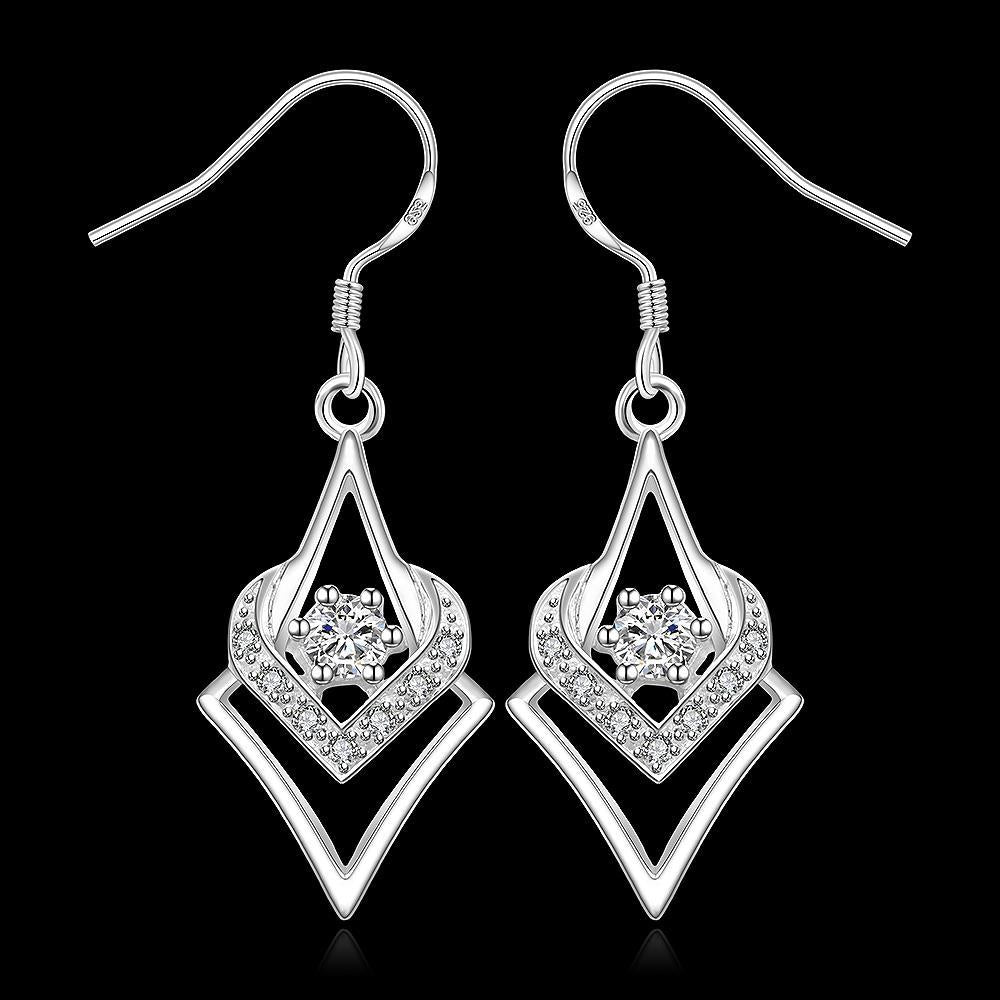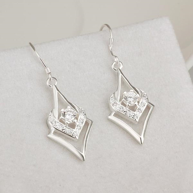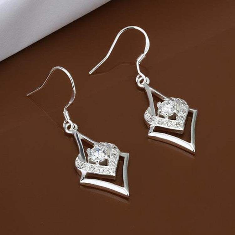 Personality With Geometric Silver-plated Diamond Zircon Heart-shaped Hexagonal Star Earrings