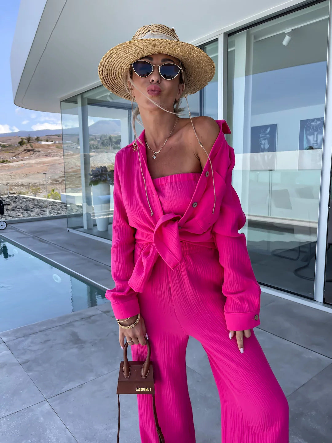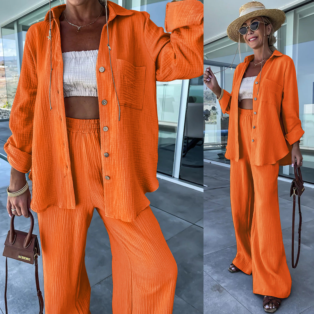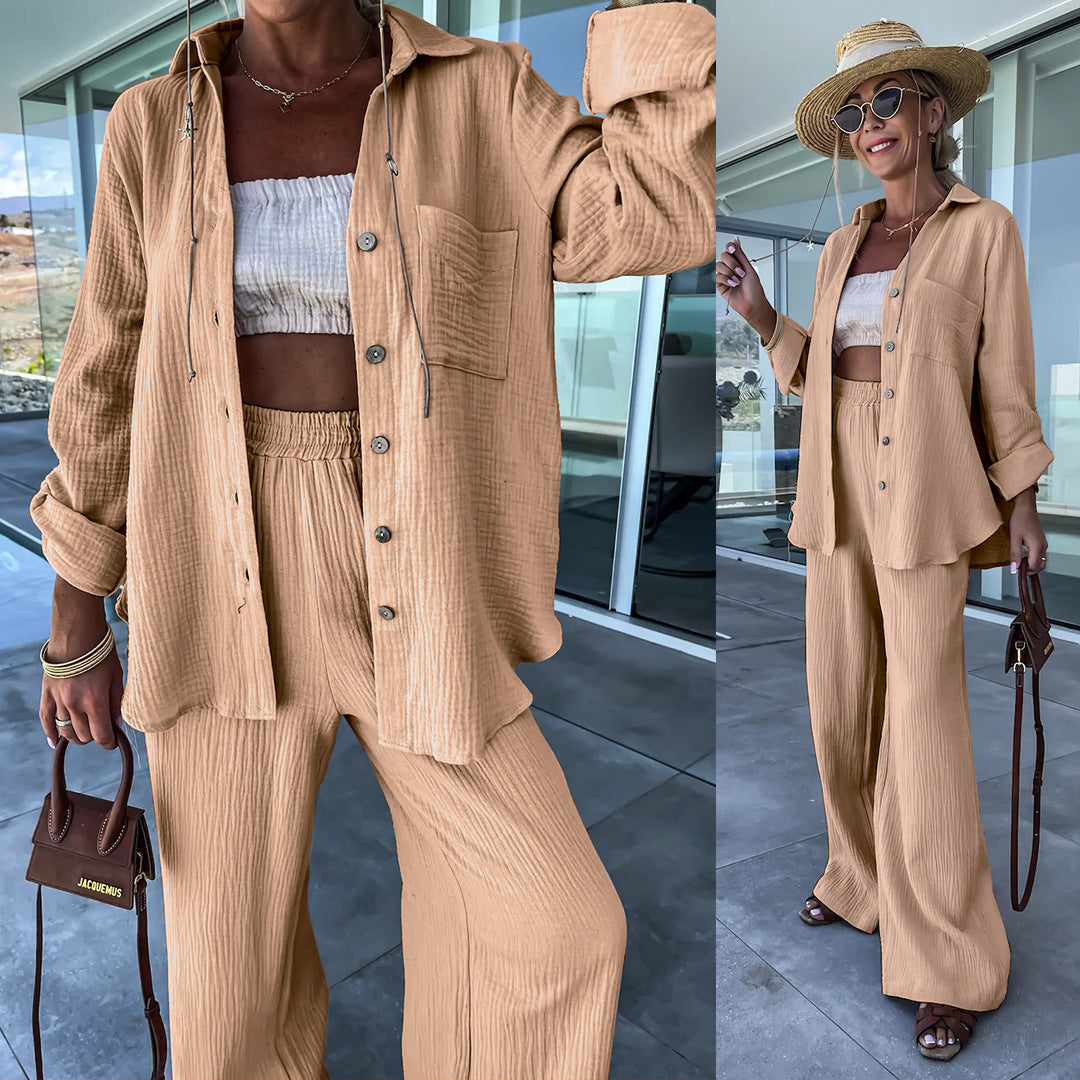 Polo Collar Long Sleeved Shirt Straight Pants Fashion Set