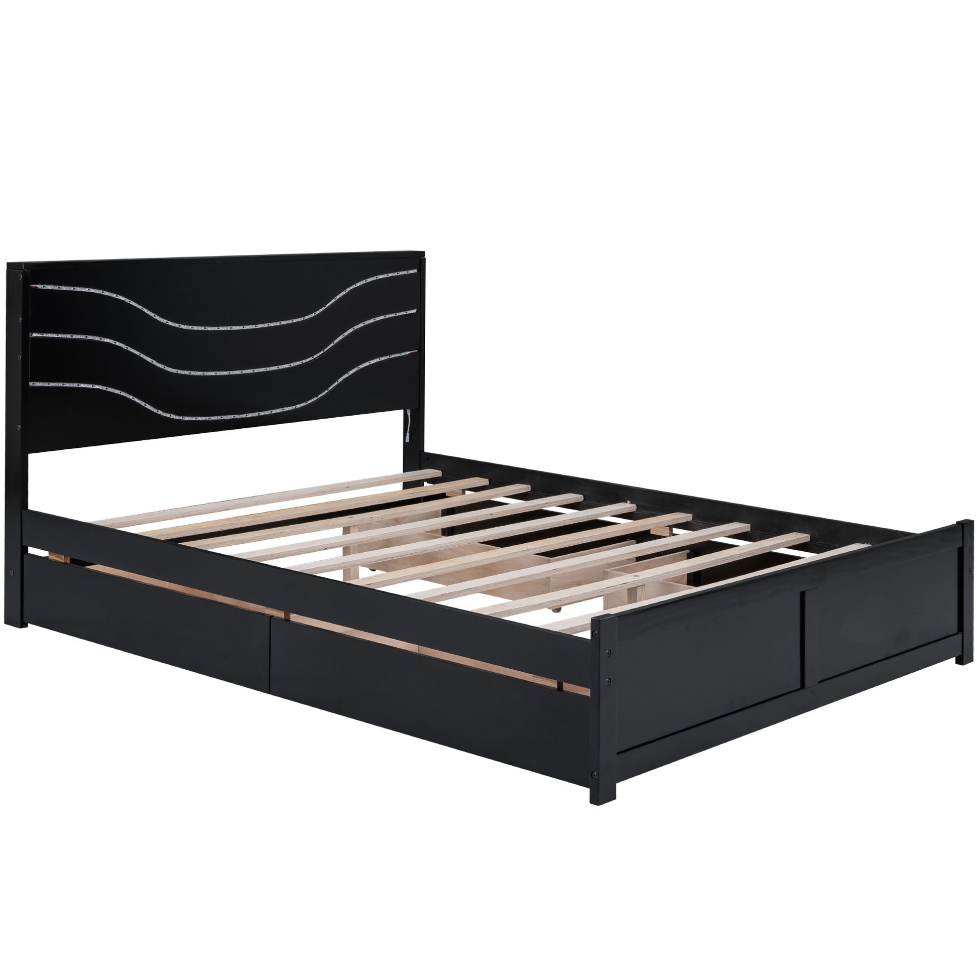 Comes with LED lights, this wood platform bed is especially suitable for your colorful night life. White/Black finish and clean lines design will look stunning in any bedroom in your home. 4 Drawers provide additional storage space.
