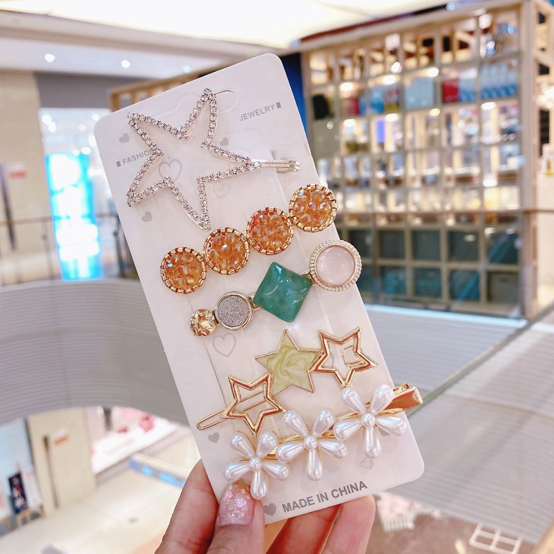 South Korea Ins Net Red Pearl Hairpin Set Hairpin Girl Word Clip Combination Side Bangs Clip Grabbing Clip