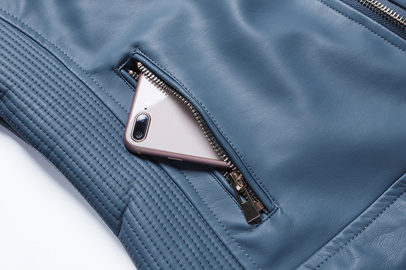 Women's warm casual hooded leather jacket